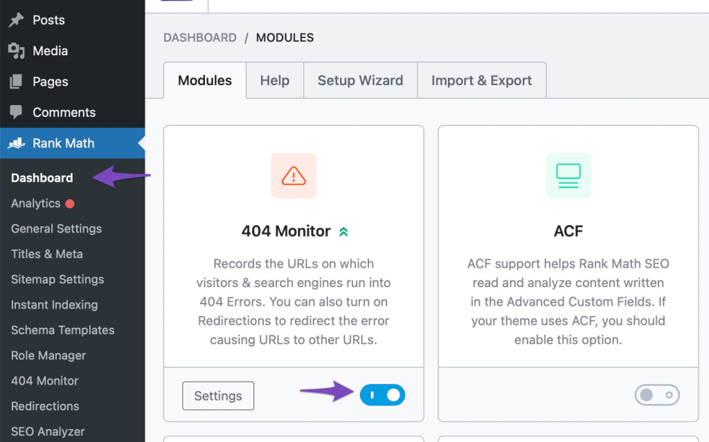Use Rank Math’s built-in Redirection Manager to handle broken links or URL changes.