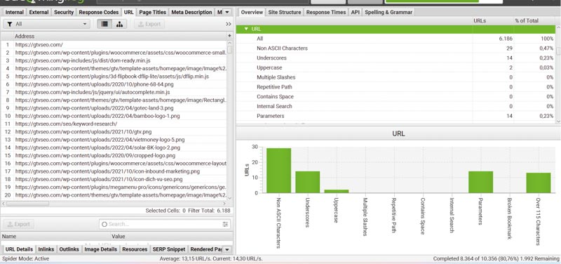 To check URL structure and spot low-quality URLs with Screaming Frog: