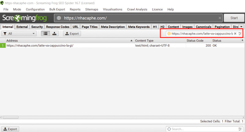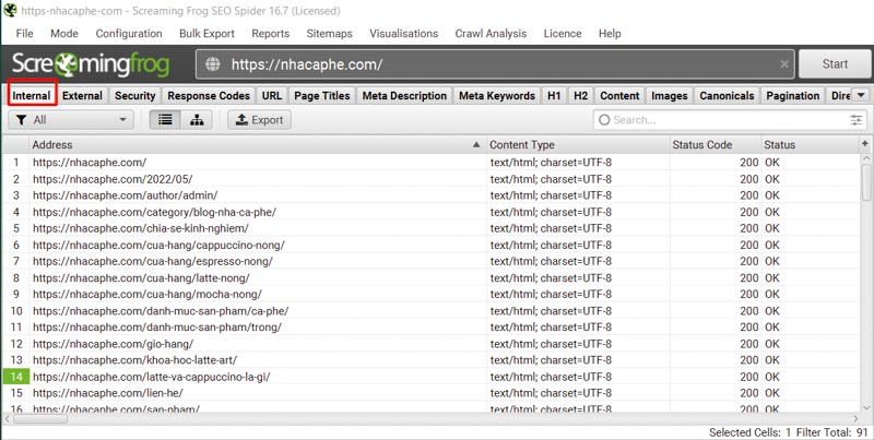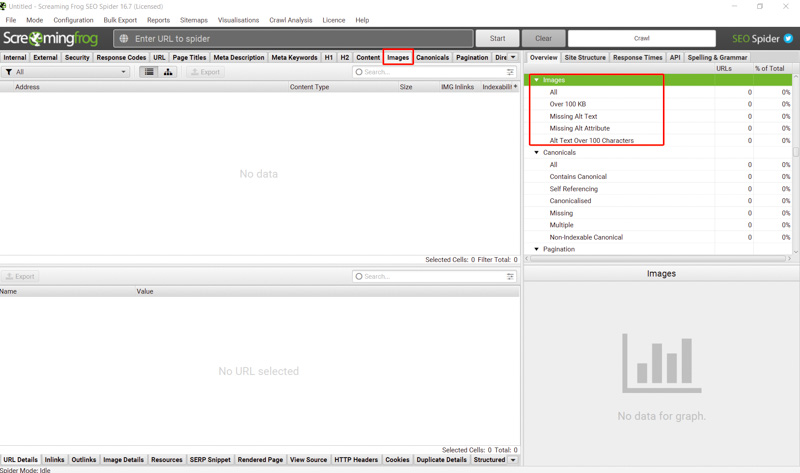 Step 1: Go to the URL tab in Screaming Frog SEO Spider.