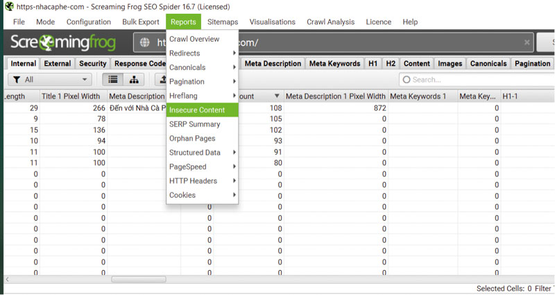 To check whether your site is fully secure, go to the top menu Reports → Insecure Content. You’ll get a report listing insecure resources (images, JavaScript, CSS, etc.). Fix these to maintain HTTPS integrity and protect users.